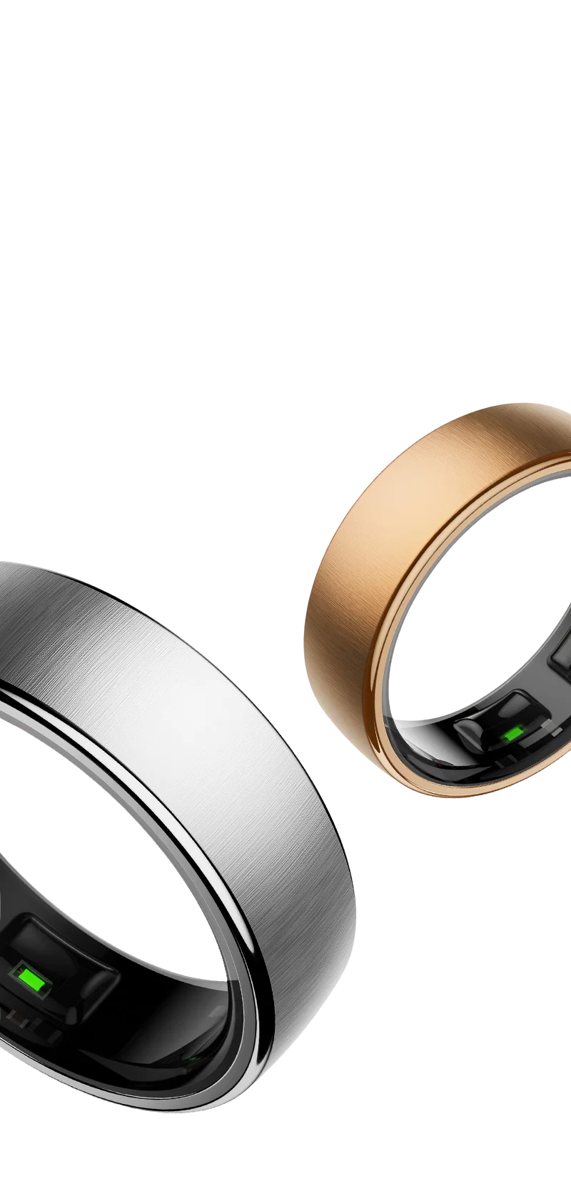 The ring uses advanced PPG (photoplethysmography) sensors (the green/red lights visible inside) to monitor blood flow, combined with an accelerometer to detect movement. Our proprietary algorithms then accurately determine your time spent in different sleep stages.
